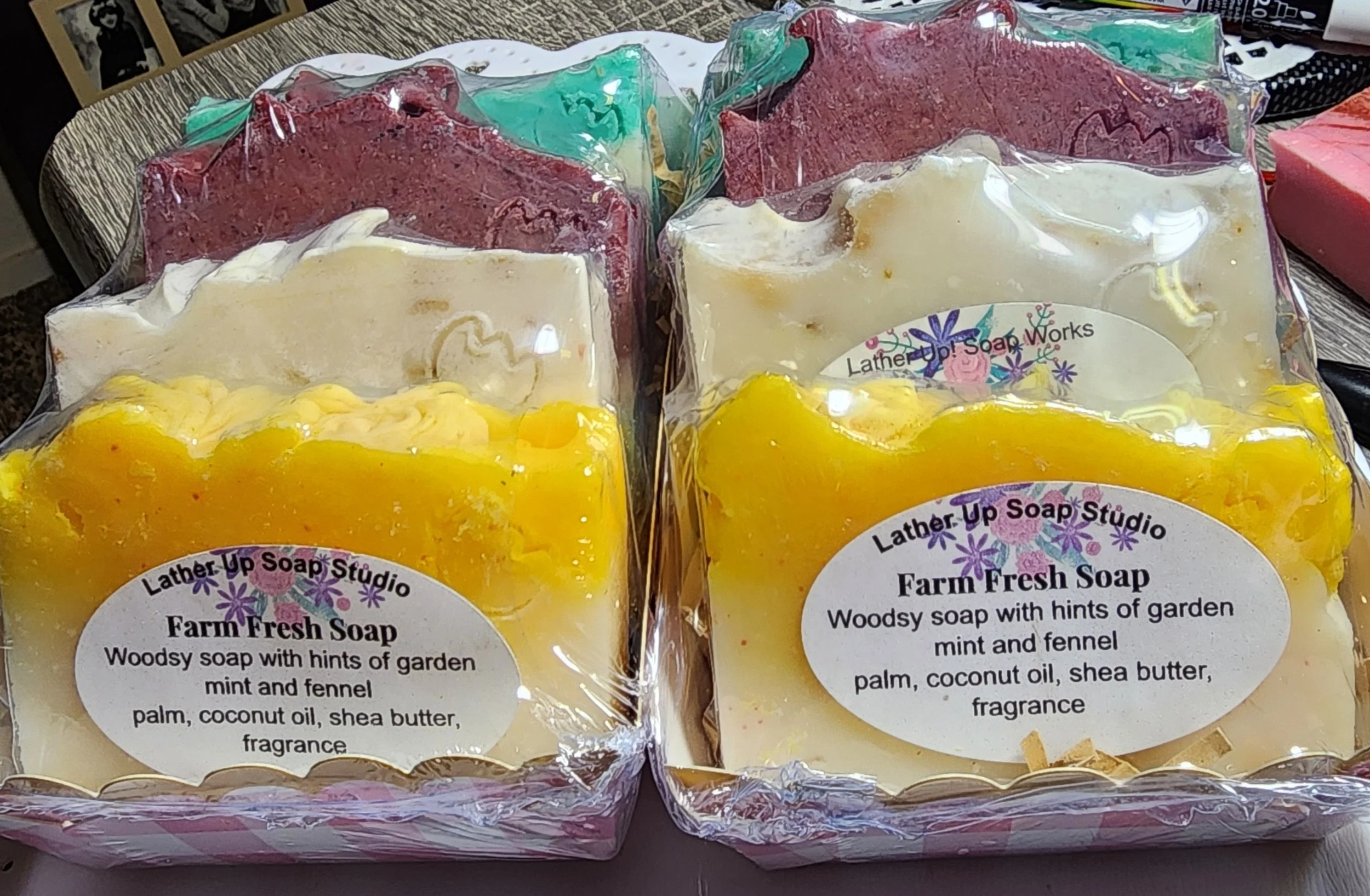 Shop Categories: All Gift boxes/collections Wax Melts/Candles Lip Balm Holiday Face and body creams beard & hair Patchouli activated charcoal Gentle for baby carrot puree buttermilk Guest or baby size Unique aloe vera juice added honey natural color unscented pine tar activated charcoal activated charcoal raspberry Hand milled Bath Bombs Medium CBD Products Scrubs Hair Care/beard care Face Masks Pet Friendly Products Bath Bombs Large Glycerin Soap Gift Card exfoliates fruity Floral cherry honey Goat's Milk Manly Hemp Products Handmade Soap Shop All | Gift boxes/collections | Wax Melts/Candles | Lip Balm | Holiday | Face and body creams | beard & hair | Patchouli | activated charcoal | Gentle for baby | carrot puree | buttermilk | Guest or baby size | Unique | aloe vera juice | added honey | natural color | unscented | pine tar | Hand milled | Bath Bombs Medium | CBD Products | Scrubs | Hair Care/beard care | Face Masks | Pet Friendly Products | Bath Bombs Large | Glycerin Soap | Gift Card | exfoliates | fruity | Floral | cherry | honey | Goat's Milk | Manly | Hemp Products | Handmade Soap | Quick View Hippy Vibes Soap Collection $20.00 Quick View Botanical Facial Cleanser $7.00 Quick View Lemongrass Soap $5.00 Sold Out Quick View Hugo Boss Face and Body Lotion for Men $10.00 Sold Out Quick View Strawberries and Champagne Face & Body Lotion $10.00 Quick View Green Aloe & Clover Face and Body Lotion $10.00 Quick View Whipped Sugar Scrub Sampler pack $10.00 Quick View Tallow Facial Cream $6.00 Quick View Facial Steam Kit $7.00 Quick View Wild Orange and Rose $5.00 Quick View Vanilla Bliss $5.00 Sold Out Quick View Avocado Cilantro Lime $5.00 Quick View Cucumber Mint $5.00 Quick View Oatmeal Scrubby (sm. facial) $3.00 Quick View Moo massage bar $5.00 Quick View Witches Brew $5.00 Quick View Black Raspberry Vanilla Bar $5.00 Quick View Holy Smoke $5.00 Quick View Harvest Moon $5.00 Sold Out Quick View Angry Rose $5.00 Quick View Buttermilk Carrot Gentle Cleansing Bar $5.00 Sold Out Quick View Chocolate Milk Bar $3.50 Quick View Patchouli $5.00 Quick View Exotic Amazon Teakwood $5.00 Quick View Luscious Lilac $5.00 Sold Out Quick View Watermelon Bar $5.00 Sold Out Quick View April Fresh $5.00 Quick View Cracked Heel Fix $6.00 Quick View Sunflower Shave Soap $5.00 Quick View Morning Wood $5.00 Quick View Morning Bar $5.00 Quick View Flower Child $5.00 Quick View Cabin Fever $5.00 Quick View Gentleman Caller $5.00 Quick View Morning Glory Bar $5.00 Sold Out Quick View Men's Antibacterial Bar $5.00 Quick View Revitalizing Rosemary Mint $5.00 Quick View Oatmeal Scrubby $4.00 Quick View Grandpa's Pipe $5.00 Sold Out Quick View Mocha Cappuccino $5.00 Quick View Just Lavender $5.00 Quick View Green Aloe and Clover $5.00 Quick View Nearly Naked Goats Milk Bar $5.00 Quick View Be Delicious Whipped Sugar Scrub $8.00 Quick View Mother Earth $5.00 Quick View Purple Haze $5.00 Quick View Honey Bear $5.00 Quick View Buck Naked Goats Milk $5.00 Quick View Charcoal and Aloe $5.00 Quick View Johnny Be Good Sale Price: $0.00 Original Price: $5.00 Sale Quick View Vine Ripe Bar $5.00 Quick View Gardeners Bar $5.00 Quick View Country Apple Soap $5.00 Quick View Dirty Old Man $5.00 Quick View Vetiver and Lavender $5.00 Sold Out Quick View Forrest Rain Bar $5.00 Quick View Cozy Wool Socks $5.00 Quick View Bath Bombs Medium $3.00 Sold Out Quick View Healing Salve $20.00 Quick View Anna's Perfect Lotion from $6.50 Sale Quick View Healing Salve with cayenne pepper 2 oz $35.00 Quick View Beach Body Smoother $7.00 Quick View Moisturizing Shampoo and Conditioner Set $9.00 Quick View Pampered Paws Balm $6.50 Quick View Large Bath Bombs 5 oz $4.00 Quick View Urban Cowboy Bar $5.00 Quick View Mango Cilantro Bar $5.00 Quick View Peppermint Scrub Bar $5.00 Quick View Nearly Naked Goats Milk Bar $5.00 Sold Out Quick View Pear Berry $5.00 Quick View Six Pack Soap $5.00 Quick View Hunters Vanishing Scent Bar $5.00 Quick View Shave Soap $5.00 Quick View Strawberry Glycerin Bug Soap $3.50 Sold Out Quick View Luffa Scrubby Bar - Calypso Sun $5.00 Quick View Wisteria Bar $5.00 Quick View Eucalyptus Spearmint Bar $5.00 Sold Out Quick View Lavender Lemon & Eucalyptus Bar $5.00 Quick View Glimpse of a Mermaid Bar $5.00 Sold Out Quick View Lather Up Soap Studio Gift Card from $10.00 Quick View Grape Crush Bar $5.00 Sold Out Quick View Grease Monkey Mechanics Bar $5.00 Quick View Farm Fresh Bar $5.00 Quick View Back in the Saddle $5.00 Quick View Peachy Clean Bar $5.00 Quick View Nearly Naked $5.00 Sold Out Quick View Jasmine Rose $5.00 Quick View Foot Soak Eucalyptus and Spearmint $7.00 Quick View Love Spell $5.00 Quick View Lip Balms $3.00 Quick View Bergamot Shave Soap $5.00 Quick View Keen As Mustard $5.00 Quick View Kiwi Raspberry $5.00 Quick View Caribbean Holiday Bar $5.00 Quick View Confetti Wax Melt Donuts $6.00 Quick View Spooky Wax Melts Sale Price: $2.50 Original Price: $5.00 Sale Quick View Beard and Hair Shampoo Bar $5.00 Quick View Farmers Market Soap Collection $20.00 Quick View Goat Milk Soap Collection $20.00 Quick View Working Man Soap Collection $20.00 Quick View Flower Power Soap Collection $20.00